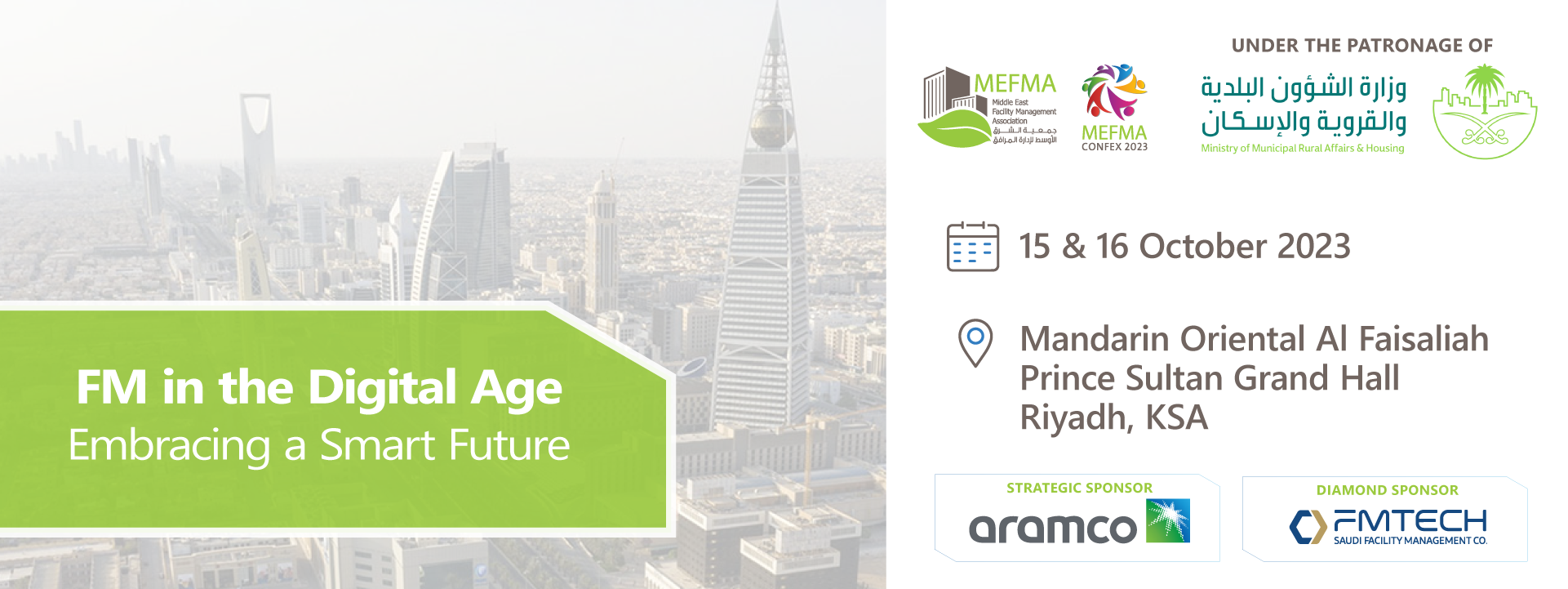 Under the theme of “FM in the Digital Age – Embracing a Smart Future”, the 11th edition of the conference will take place on October 15 & 16, 2023 at the Mandarin Oriental Al Faisaliah Hotel – Riyadh, Saudi Arabia.